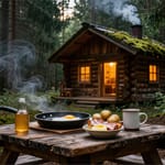 Завтрак, лес, уют, рустикальный стиль, домик...