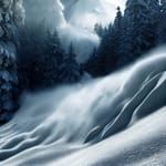 Зима, горы, хвойные деревья, заснеженные...