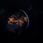 Космос, ночь, планета, земля, освещение, арт...