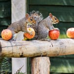 Зеленый, серый, две, белка, яблоки, дома, доски