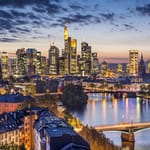 Интересная фотография из каталога Города. Теги: #река #вечер #дома #Германия #Frankfurt #огни #мост. Разрешение этой картинки 6000x4000. Эту заставку скачали уже 230 раз.