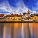 Отличная картинка для рабочего стола из категории Города. Теги: #Германия #панорама #мост #дома #река #облака #солнце #небо. Разрешение изображения 10000x3505. Эту картинку уже скачали 32 раза.