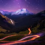 Прикольное фото из категории Горы. Теги: #пейзаж #ночь #небо #звезды #горы #снег #лес #дорога. Исходное разрешение этих обоев 3840x2160. Это изображение уже скачали 735 раз.