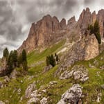 Фото: зелень, небо, облака, скалы, трава, камни, пасмурно