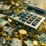 Фото: Калькулятор, Деньги, Доллары США, Монеты, Золото