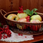 Красивые обои для рабочего стола из рубрики Еда. Теги: #корзина #рябина #стол #салфетка #яблоки #ягоды #листья. Изначальное разрешение картинки 4000x2485. Данную картинку скачали 17 раз.
