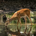 Олень, природа, вода, отражение, лес...