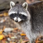 Картинка на рабочий стол: енот, осень, листья