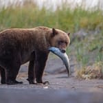 Обои: рыба, медведь, пища на входе и выходе)), трапеза, всё