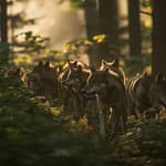 Картинка на рабочий стол: волки, лес, осень, дикая природа