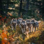 Картинка для рабочего стола: волки, лес, осень, дикая