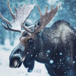Картинка: лось, снег, зима, дикая природа, лес, рога