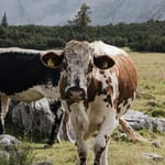 Фото: корова, пейзаж, природа, горы, ферма, животные, трава