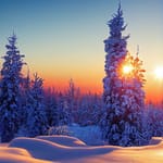 Зима, снег, лес, пейзаж, деревья, закат...