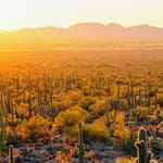 Картинка: пейзаж, пустыня, закат, кактусы, природа, горы