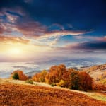 Картинка для рабочего стола: осень, пейзаж, горы, закат