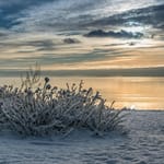 Картинка: зима, снег, пейзаж, море, закат, природа, холод