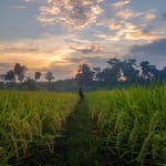 Картинка: пейзаж, рисовые поля, закат, природа, фермер