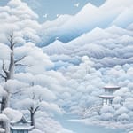 Хорошый фон для рабочего стола из категории Зима. Теги: #ИИ-искусство #восточная зима #мирная простота #искусство создания безмятежных пейзажей #японский храм в многослойном искусстве #глубина тихой природы #текстура мягкого снега #пастельные тона холодного спокойствия #спокойная замерзшая река #птицы направляются на ночлег #облака снежинок #полумесяц наблюдает. Разрешение оригинала обоев 2448x4368. Данные обои скачали уже 389 раз.
