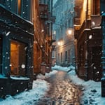 Фото: снег, переулок, город, ночь, зима, городской, уличные
