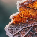 Фотография: лист, мороз, ледяные кристаллы, макрос