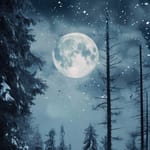 Картинка: лунный снежный пейзаж, зимняя ночь, полная луна