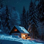 Фото: снежный, кабина, ночь, звезды, зима, деревья, уютный