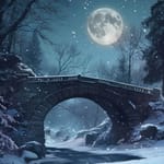 Заставка на рабочий стол: ночь, зима, снег, каменный мост