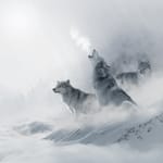 Обои на рабочий стол: волки, природа, зима, туман, горы