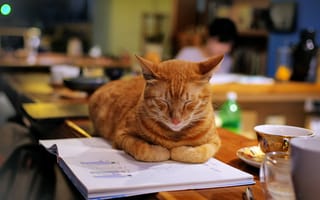 Картинка: кошка, кот, обработка, взгляд, лежанка, рыжая