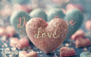 Картинка: сердца, любовь, красный, блестки, фон, декор