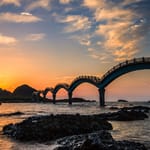 Прикольное фото из раздела Мосты. Теги: #камни #облака #закат #мост #скалы #рассвет #небо #море. Размер оригинала этих обоев 3840x2562. Данные обои уже скачали 132 раза.