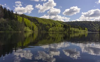 Великолепные обои на рабочий стол из раздела Озёра. Теги: #спокойствие #отдых #зелень #вода #пейзаж #облака #небо #лес #озеро #природа. Изначальный размер картинки 4288x2704. Эти обои скачали 871 раз.