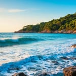 Хорошый фон для рабочего стола из рубрики Океан. Теги: #лес #скалы #волны #пляж #природа #пейзаж #море. Разрешение оригинала обоев 3840x2160. Эту фотографию уже скачали 601 раз.