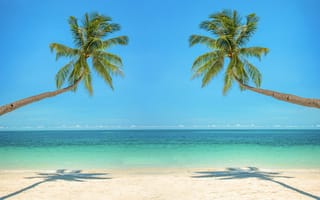 Обои для рабочего стола: песок, море, пальмы, солнце