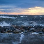 Классная картинка из раздела Океан. Теги: #птицы #небо #камни #волны #закат #пейзаж #море. Оригинальный размер фотографии 7533x5022. Эту фотографию уже скачали 150 раз.