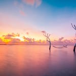 Картинка: закат, море, деревья, пейзаж, природа, гладь