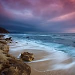Обои: природа, вода, море, закат, пляж, камни, вечер