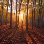 Картинка на рабочий стол: осень, лес, листва, солнце