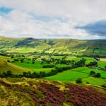 Фото: пейзаж, природа, горы, зелень, долина, облака, цветы