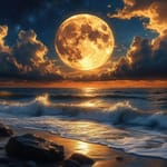 Замечательные обои из категории Природа. Теги: #пляж #рабочий стол #берег #1920х1080 #закатные облака #ночной пейзаж #ночная эстетика #небесное светило #мистическая атмосфера #лунный пейзаж. Разрешение оригинала данной картинки 6720x3840. Данные обои уже скачали 578 раз.