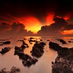 Фотография: море, скалы, оранжевое небо, sea, orange sky