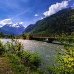 Хорошый фон для рабочего стола из категории Природа. Теги: #небо #мост #солнце #горы #облака #деревья #лес #зелень. Исходное разрешение обоев 4000x2670. Данные обои уже скачали 40 раз.