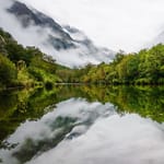Интересная фотография из категории Природа. Теги: #деревья #отражение #берег #туман #горы #склон #лес #зелень. Оригинальное разрешение этой картинки 3840x2160. Эту заставку уже скачали 154 раза.