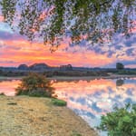 Обои на рабочий стол: облака, деревья, водоем, берег