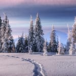 Фото: зима, снег, лес, пейзаж, природа, горизонт, деревья