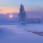 Картинка: зима, снег, пейзаж, закат, деревья, природа, холод