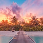 Интересная фотография из раздела Природа. Теги: #пейзаж #природа #море #остров #пальмы #закат #пляж. Оригинальный размер этой картинки 6686x3064. Текущие обои уже скачали 88 раз.