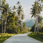 Обои: пейзаж, дорога, пальмы, природа, горы, лето, отдых
