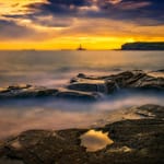 Картинка: закат, море, скалы, природа, пейзаж, океан, свет